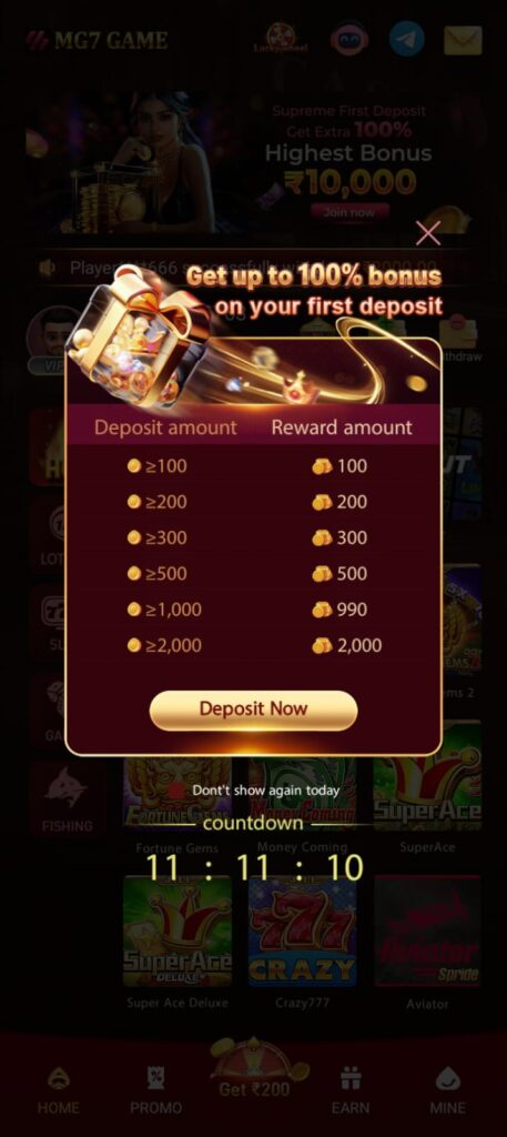 MG7 often promotes attractive welcome bonuses to attract new users. These may include: